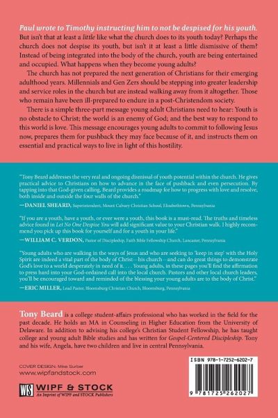 Paul wrote to Timothy instructing him to not be despised for his youth. But isn't that at least a little like what the church does to its youth today? Perhaps the church does not despise its youth, but isn't it at least a little dismissive of them? Instead of being integrated into the body of the church, youth are being entertained and occupied. What happens when they become young adults? The church has not prepared the next generation of Christians for their emerging adulthood years. Millennials and Gen Zers should be stepping into greater leadership and service roles in the church but are instead walking away from it altogether. Those who remain have been ill-prepared to endure in a post-Christendom society. There is a simple three-part message young adult Christians need to hear: Youth is no obstacle to Christ; the world is an enemy of God; and the best way to respond to this world is love. This message encourages young adults to commit to following Jesus now, prepares them for pushback they may face because of it, and instructs them on essential and practical ways to live in light of this hostility.