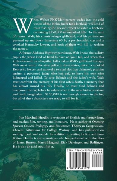 When private detective Walter PKK Montgomery wades into the cold waters of the Nolin River for a birthday weekend of trout fishing, he doesn't expect to catch a briefcase containing $150,000 in unmarked bills. In the next 36 hours, Walt, his country-singer girlfriend, Belinda, and his partner, Johnny Horoscope, are pursued up and down Interstate 65 by a psychopathic cop and a crooked Kentucky lawyer, and both of them will kill to reclaim the money. A former Alabama Highway patrolman, Walt knows that a dirty cop is the worst kind of fiend to have on your tail, and when this knife-obsessed, psychopathic killer takes Walt's girlfriend hostage, Walt must outrun the state police in three states, outwit a crooked Kentucky lawyer, and unravel a twisted plot that ultimately pits him against a perverted judge who has paid to have his own wife kidnapped and killed. To save Belinda and the judge's wife, Walt must confront the memory of his first wife's death. Finally, he must find Belinda and overpower the cop before he subjects her to the most hideous torture and death imaginable. $150,000 is not enough money to die for, but all of these characters are ready to kill for it. Joe Marshall Hardin crafts a thrilling and action-packed ride as Walt races to save his girlfriend and clear his name. This crime thriller races to a dramatic and gun-blazing conclusion.