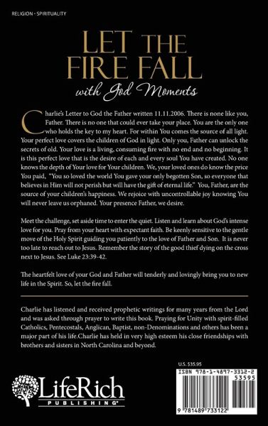 Charlie has listened and received prophetic writings for many years from the Lord and was asked through prayer to write this book. Praying for Unity with spirit-filled Catholics, Pentecostals, Anglican, Baptist, non-Denominations and others has been a major part of his life.Charlie has held in very high esteem his close friendships with brothers and sisters in North Carolina and beyond.