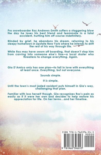 Pro snowboarder Roz Andrews-Smith suffers a staggering blow the day he loses his best friend and teammate in a fatal accident, hurtling him off course indefinitely. Blinded by grief, he abandons his dream, returning to his sleepy hometown in upstate New York where he intends to drift the rest of his way through life. While Roz may have sworn off boarding, that doesn't stop him from carving into someone else's line-a local skater who threatens to change everything. Again. Gia D'Amico only has one plan-to fall in love with everything at least once. Everything, but not everyone. Sounds simple. It is simple. Until the town's most jaded resident puts himself in Gia's way, challenging that plan. Familiar with loss herself though, Gia recognizes Roz's pain as easily as if it were her own and decides to help restore his appreciation for life. On her terms...and her timeline.