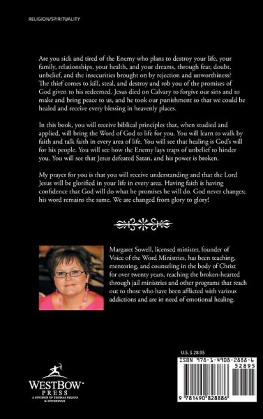 Are you sick and tired of the Enemy who plans to destroy your life, your family, relationships, your health, and your dreams, through fear, doubt, unbelief, and the insecurities brought on by rejection and unworthiness? The thief comes to kill, steal, and destroy and rob you of the promises of God given to his redeemed. Jesus died on Calvary to forgive our sins and to make and bring peace to us, and he took our punishment so that we could be healed and receive every blessing in heavenly places. In this book, you will receive biblical principles that, when studied and applied, will bring the Word of God to life for you. You will learn to walk by faith and talk faith in every area of life. You will see that healing is God?s will for his people. You will see how the Enemy lays traps of unbelief to hinder you. You will see that Jesus defeated Satan, and his power is broken. My prayer for you is that you will receive understanding and that the Lord Jesus will be glorified in your life in every area. Having faith is having confidence that God will do what he promises he will do. God never changes; his word remains the same. We are changed from glory to glory!