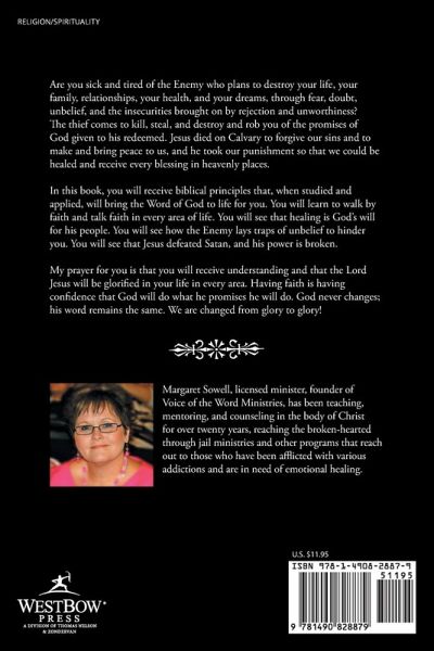 Are you sick and tired of the Enemy who plans to destroy your life, your family, relationships, your health, and your dreams, through fear, doubt, unbelief, and the insecurities brought on by rejection and unworthiness? The thief comes to kill, steal, and destroy and rob you of the promises of God given to his redeemed. Jesus died on Calvary to forgive our sins and to make and bring peace to us, and he took our punishment so that we could be healed and receive every blessing in heavenly places. In this book, you will receive biblical principles that, when studied and applied, will bring the Word of God to life for you. You will learn to walk by faith and talk faith in every area of life. You will see that healing is God?s will for his people. You will see how the Enemy lays traps of unbelief to hinder you. You will see that Jesus defeated Satan, and his power is broken. My prayer for you is that you will receive understanding and that the Lord Jesus will be glorified in your life in every area. Having faith is having confidence that God will do what he promises he will do. God never changes; his word remains the same. We are changed from glory to glory!