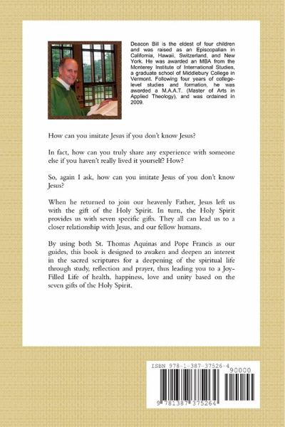 How can you imitate Jesus if you don't know Jesus? In fact, how can you truly share any experience with someone else if you haven't really lived it yourself? How? So, again I ask, how can you imitate Jesus of you don't know Jesus? When he returned to join our heavenly Father, Jesus left us with the gift of the Holy Spirit. In turn, the Holy Spirit provides us with seven specific gifts. They all can lead us to a closer relationship with Jesus, and our fellow humans. By using both St. Thomas Aquinas and Pope Francis as our guides, this book is designed to awaken and deepen an interest in the sacred scriptures for a deepening of the spiritual life through study, reflection and prayer, thus leading you to a Joy-Filled Life of health, happiness, love and unity based on the seven gifts of the Holy Spirit.