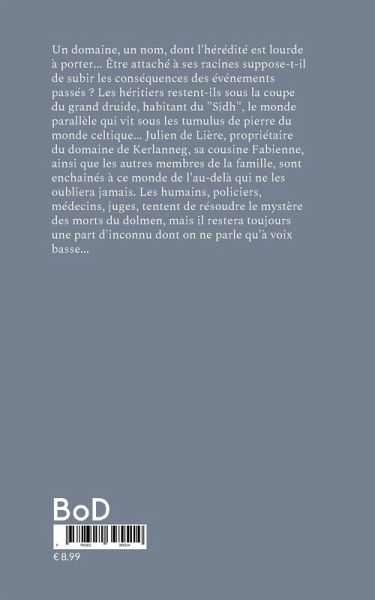 Un domaine, un nom, dont l'hérédité est lourde à porter... Être attaché à ses racines suppose-t-il de subir les conséquences des événements passés ? Les héritiers restent-ils sous la coupe du grand druide, habitant du "Sidh", le monde parallèle qui vit sous les tumulus de pierre du monde celtique... Julien de Lière, propriétaire du domaine de Kerlanneg, sa cousine Fabienne, ainsi que les autres membres de la famille, sont enchaînés à ce monde de l'au-delà qui ne les oubliera jamais. Les humains, policiers, médecins, juges, tentent de résoudre le mystère des morts du dolmen, mais il restera toujours une part d'inconnu dont on ne parle qu'à voix basse...