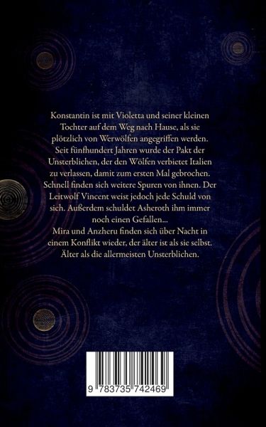 Konstantin ist mit Violetta und seiner kleinen Tochter auf dem Weg nach Hause, als sie plötzlich von Werwölfen angegriffen werden. Seit fünfhundert Jahren wurde der Pakt der Unsterblichen, der den Wölfen verbietet Italien zu verlassen, damit zum ersten Mal gebrochen. Schnell finden sich weitere Spuren von ihnen. Der Leitwolf Vincent weist jedoch jede Schuld von sich. Außerdem schuldet Asheroth ihm immer noch einen Gefallen... Mira und Anzheru finden sich über Nacht in einem Konflikt wieder, der älter ist als sie selbst. Älter als die allermeisten Unsterblichen.