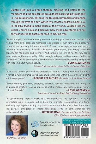 Elaine Cooper is a Clinical Professor at the University of California School of Medicine at San Francisco. She is an internationally recognized expert in the practice of group psychotherapy. She has been on the faculty of Smith College, New York University, New York Medical College, Hunter College, Adelphi University and U.C. Berkeley. She currently has a clinical practice in Berkeley, California.