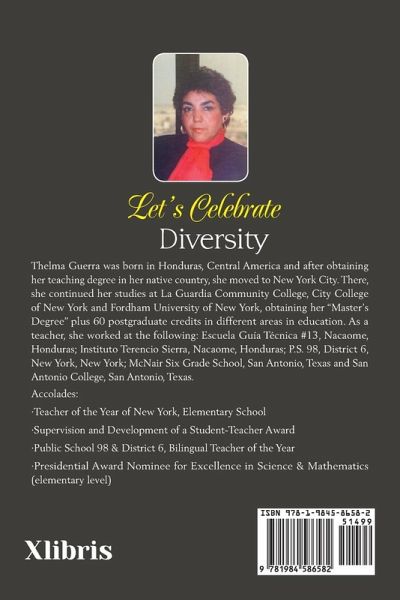 Thelma Guerra uses poetry to discuss and illustrate different school subjects to her students. She is a firm believer that through poetry, children can express their feelings and ideas. Her debut publication titled "Celebremos la diversidad" (published by Xlibris) comprises the poems she has written about her personal experiences, presented through a mother's, teacher's and a member of society's perspective. Now, she presents her second book titled "Let's Celebrate Diversity" (the English version to her debut publication). Drawing inspiration from her experiences living in different places, Guerra hopes to effectively portray the need to appreciate diversity through her words of rhythm and rhyme. The book contains 47 poems with a message of brotherhood and respect to the cultural values of different ethnic groups represented in society. Guerra believes that the book has the potential to be used in the classroom because of its richness in language and literary images. "Through my poems, I send uplifting messages of harmony and love to parents, teachers, children and the entire educational system," she shares.