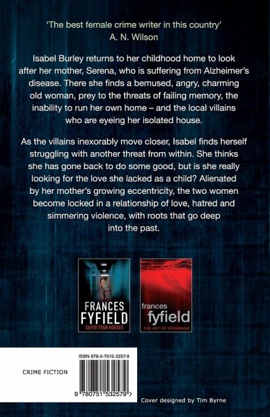 Isabel Burley returns to her childhood home to look after her mother, Serena, who is suffering from Alzheimer's disease. There she finds a bemused, angry, charming old woman, prey to the threats of failing memory, the inability to run her own home - and the local villains who are eyeing her isolated house. As the villains inexorably move in, Isabel finds herself struggling with another threat from within. She thinks she has gone home to do some good, but is she really looking for the love she lacked as a child? Alienated by her mother's growing eccentricity, the two women become locked in a relationship of love, hatred and simmering violence, with roots that go deep into the past.