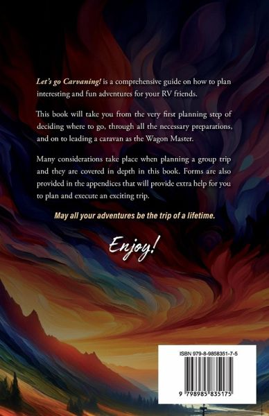 Let's Go Caravaning! is a how-to book that provides specific guidance on planning and leading an RV caravan. It begins with the basic question of where to start, explores the options of taking a group of RVs on a trip, covers the considerations in selecting campgrounds and venues, discusses the various aspects required in leading a caravan, and provides abundant tips and tricks for success. Forms are provided as helpful tools in executing an outstanding adventure for good friends, soon-to-be friends, and family.