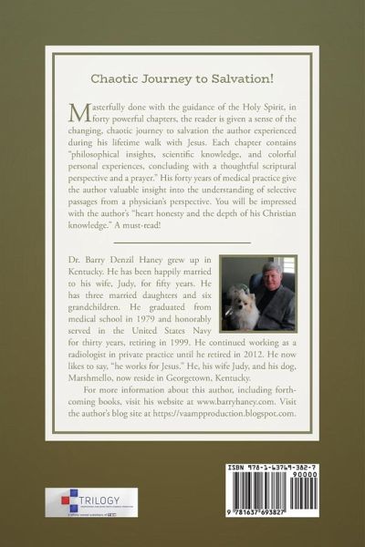 Chaotic Journey to Salvation! Masterfully done with the guidance of the Holy Spirit, in forty powerful chapters, the reader is given a sense of the changing, chaotic journey to salvation the author experienced during his lifetime walk with Jesus. Each chapter contains "philosophical insights, scientific knowledge, and colorful personal experiences, concluding with a thoughtful scriptural perspective and a prayer." His forty years of medical practice give the author valuable insight into the understanding of selective passages from a physician's perspective. You will be impressed with the author's "heart honesty and the depth of his Christian knowledge." A must-read!