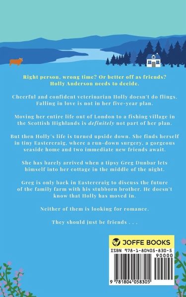 Right person, wrong time? Or better off as friends? Holly Anderson needs to decide. Cheerful and confident veterinarian Holly doesn't do flings. Falling in love is not in her five-year plan. Moving her entire life out of London to a fishing village in the Scottish Highlands is definitely not part of her plan. But then Holly's life is turned upside down. She finds herself in tiny Eastercraig, where a run-down surgery, a gorgeous seaside home and two immediate new friends await. She has barely arrived when a tipsy Greg Dunbar lets himself into her cottage in the middle of the night. Greg is only back in Eastercraig to discuss the future of the family farm with his stubborn brother. He doesn't know that Holly has moved in. Neither of them is looking for romance. They should just be friends . . . Right?