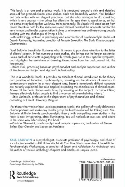 Let's Keep Talking: Lacanian Tales of Love, Sex, and Other Catastrophes is a collection of original Lacanian case studies of young people today as they struggle with their own modern existential dilemmas of sex and love, life and death. The context, background, and forms of expression may be contemporary, but the clients' problems, structures, and existential dilemmas are quite classic. The five narrative tales highlight the role a Lacanian orientation played in the interactions, formulations, and results, from initial meetings to terminations. Grounded in concrete clinical material, the case studies illuminate specific and universal themes of human suffering and how we can treat that suffering by speaking. Yael Baldwin argues that in our cultural milieu of "connective technologies", and the rise of biotechnology and psychopharmacology in particular, we are in need of mental health treatment methods that highlight talking and relationships as essential to our personhood, our suffering, and our healing and growth. Let's Keep Talking argues that now, more than ever, we need the endeavour of analytic talk therapy.