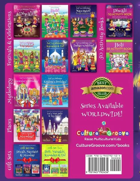 **Get our 3 Diwali themed books** WHAT: Let's Celebrate 5 Days of Diwali! WHY: Let's Learn About Ramayana, The Story of Diwali! HOW: Diwali 50 Activity Book! **FREE** Monthly Stories & Dances Workshop. Details: CultureGroove.com/Free Why do we celebrate Diwali? A golden deer, a monkey army, flying chariots, spectacular battle scenes, kings and queens, 10-headed demon, and more. Ramayana, one of the greatest epics of India, has it all and is also considered the story of Diwali. In this book, Maya, Neel, and their cute little partner, Chintu the squirrel, visit their Mausi (auntie) again who had taught them all about the 5 days of Diwali. This time, Mausi shares with them the dazzling story of King Ram, Queen Sita, and Demon Ravan that has been told for thousands of years and symbolizes the victory of good over evil. Our books retell stories for a global audience, making them thoroughly enjoyable for young readers. Maya & Neel's India Adventures 10+ Book Series is written with the mission to RAISE MULTICULTURAL KIDS! We are Indie authors and 1st generation Indian immigrants, who have dedicated the past decade to spreading multiculturalism through our local dance & culture company as well through this book series whose extreme popularity has taken even us by surprise. You can follow our cultural journey on social media at Bollywood Groove and Culture Groove. To all our little and grown-up readers: Thank You for supporting our work & mission! -------------- For bulk orders (e.g., classrooms, Diwali parties) or author visits contact ajanta@culturegroove.com Our 10+ Series Available Worldwide (CultureGroove.com/Books): Festivals: Diwali, Navratri, Holi, Vaisakhi, Ramadan & Eid Mythology: Ganesha, Krishna, Ramayana Places: Delhi & Taj Mahal, Mumbai Wedding Diwali 50 Activity Book Holi 50 Activity Book Gift Sets 1 & 2 and more!