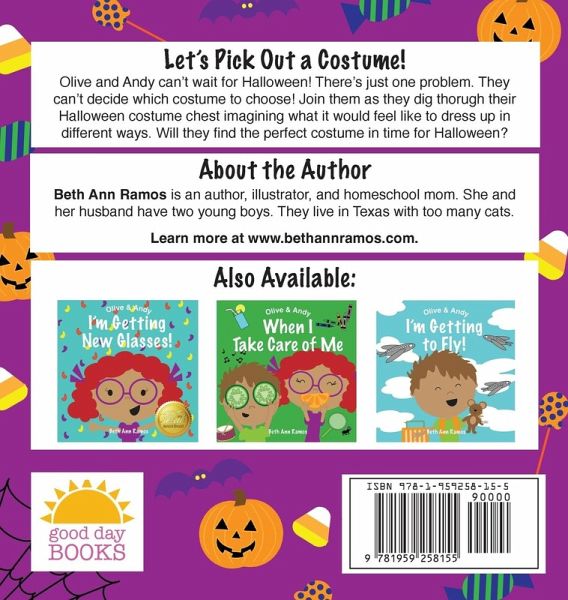 Are your kids ready for Halloween? Have they picked out a costume yet? "Let's pick out a costume! 'Cause it's Halloween! And dress up is fun So, let's play make-believe! Which one should I pick?" Olive and Andy have braved so much together. They've picked out new glasses, used good habits to stay healthy and strong, and encouraged one another on their first airplane ride. And now, in preparation for the season of pumpkin spice and everything nice, they face their greatest challenge yet... picking out the perfect Halloween costume! Step into the whimsical world of siblings Olive and Andy as they embark on an enchanting Halloween adventure in "Let's Pick Out a Costume!: A Very Not Scary Tale of Halloween Dress-Up." This delightful addition to the beloved "Olive and Andy" series is perfect for young readers ages two to five, offering a playful imaginative journey through the excitement of picking out the perfect costume for Halloween. Filled with simple, vibrant illustrations and a rhyming, rhythmic story, this Halloween picture book captures the essence of the season in a fun, safe, and innocent manner that's ideal for young children. "Let's Pick Out a Costume!" is not only a wonderful children's Halloween book but also a fantastic resource for early learning. It's perfect for preschools, kindergartens, and daycares, making it an excellent addition to classroom activities that spark creativity and imagination in young minds. Discover why readers love the adorable Olive and Andy series and make this Halloween unforgettable for your little one with this playful story. Perfect for fans of children's picture books, children's friendship books, children's emotions and feelings books, and children's holiday books, "Let's Pick Out a Costume!" is a charming tale sure to become a cherished tradition in your household and classroom alike. Grab your copy today and make it a spooktacular Halloween for your little one!