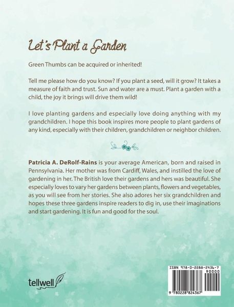 Green Thumbs can be acquired or inherited! Tell me please how do you know? If you plant a seed, will it grow? It takes a measure of faith and trust. Sun and water are a must. Plant a Garden with a child, the joy it brings will drive them wild! I love planting gardens and especially love doing anything with my grandchildren. I hope this book inspires more people to plant gardens of any kind, especially with their children, grandchildren or neighbor children.
