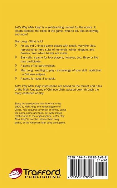 Mah Jong -- What is it? An age-old Chinese game played with small, ivory-like tiles, representing three suits of numerals, winds, dragons and flowers, from which hands are made. Basically, a game for four players; however, two, three or five may participate. A game of no partnerships. Mah Jong -- exciting to play -- a challenge of your skill -- addictive! -- a Chinese enigma A game for ages 8 to adult. Let's Play Mah Jong! instructions are based on the format and rules of the Mah Jong game of Chinese birth, passed down through the many centuries of play. Since its introduction into America in the 1920s, Mah Jong, the national game of China, has acquired a variety of forms, using the same name and tiles, but with limited relationship to the original game. Let's Play Mah Jong! is not the Internet Mah Jong game, or the American Mah Jong card game.