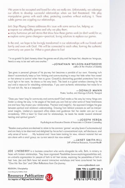 We yearn to be accepted and loved for who we really are. Unfortunately, we sabotage our efforts to develop successful relationships when we feel threatened. We play manipulative games with each other, protecting ourselves without realizing it. These subtle games are crippling our relationships. Let's Stop Playing Games addresses this issue with some serious fun, helping us: oexpose our unhealthy games and why we play them; oenjoy humorous yet sad stories that show how these games work (or don't work) for us; oexplore some game changers--practical, loving solutions to replace our games. In the end, we hope to be lovingly transformed in our relationships with our friends and family and even with God. We will be connected to each other, forming the authentic community we yearn for. What a great place to live!