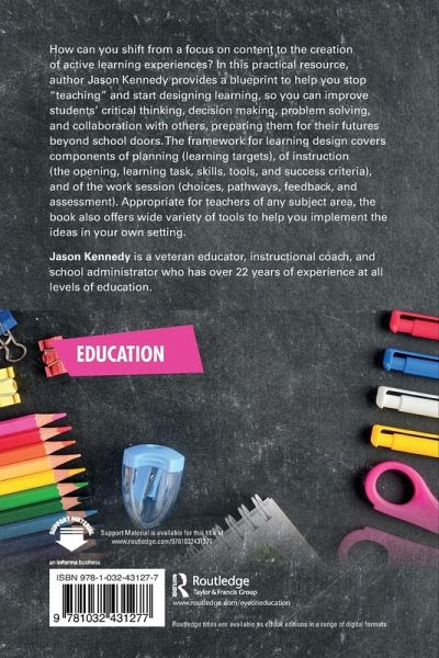 How can you shift from a focus on content to the creation of active learning experiences? In this practical resource, author Jason Kennedy provides a blueprint to help you stop "teaching" and start designing learning, so you can improve students' critical thinking, decision making, problem solving, and collaboration with others, preparing them for their futures beyond school doors. The framework for learning design covers components of planning (learning targets), of instruction (the opening, learning task, skills, tools, and success criteria), and of the work session (choices, pathways, feedback, and assessment). Appropriate for teachers of any subject area, the book also offers wide variety of tools to help you implement the ideas in your own setting.