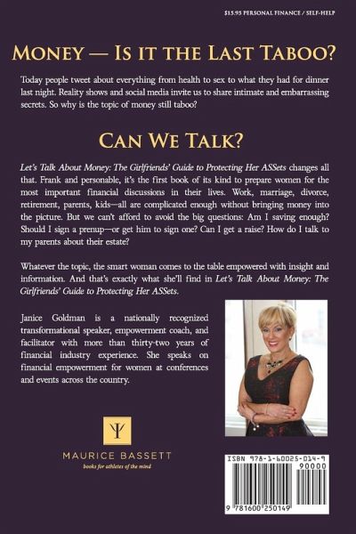 Money-Is it the Last Taboo? Today people tweet about everything from health to sex to what they had for dinner last night. Reality shows and social media invite us to share intimate and embarrassing secrets. So why is the topic of money still taboo? Can We Talk? Let's Talk About Money: The Girlfriends' Guide to Protecting Her ASSets changes all that. Frank and personable, it's the first book of its kind to prepare women for the most important financial discussions in their lives. Work, marriage, divorce, retirement, parents, kids-all are complicated enough without bringing money into the picture. But we can't afford to avoid the big questions: Am I saving enough? Should I sign a prenup-or get him to sign one? Can I get a raise? How do I talk to my parents about their estate? Whatever the topic, the smart woman comes to the table empowered with insight and information. And that's exactly what she'll find in Let's Talk About Money: The Girlfriends' Guide to Protecting Her ASSets.