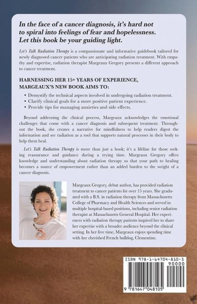 "A truly novel approach to the most mysterious part of the cancer treatment process, radiation therapy. This deeply thoughtful, and even contemplative, book takes an original approach to see patients from the beginning to the end of their therapy. There is nothing quite like this on the bookshelves." - Anthony Zietman, MD, FASTRO, Radiation Oncologist at Massachusetts General Hospital, Shipley Professor of Radiation Oncology at Harvard Medical School Do you wish there was one reliable place where you could really find out, in detail, everything you need to know about radiation therapy? You hear the words, "it's cancer." Your mind starts racing, your thoughts start swirling and you're immediately flooded with worries and questions. Before you know it, you're opening an internet search window and just staring at the screen. Where do I even start? What do I need to know? Who can help me with this? You're searching for answers, comfort, and direction- only it's not helping, and you're feeling more stressed out than ever. You don't have to stay feeling this way... Let this book show you how to: * Prepare yourself for the radiation therapy process * Know the right questions to ask your oncology team * Easily understand the different cancer treatment options * Improve your quality of life while undergoing treatment * Advocate for yourself throughout treatment * Dispel self-sabotaging thoughts by understanding the science Margeaux Gregory, R.T.(T) has delivered thousands of radiation treatments for over fifteen years, most notably spending seven years as a Senior Radiation Therapist at Massachusetts General Hospital. Now, she's sharing her accumulated knowledge to help people assemble a strategy to proceed with radiation treatment- one that encourages inner strength and peace of mind through understanding. It is possible to feel in control, informed, and ready to approach treatment confidently. Learn how today!