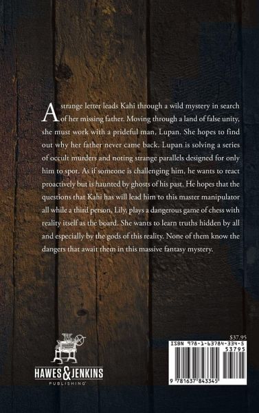 A strange letter leads Kahi through a wild mystery in search of her missing father. Moving through a land of false unity, she must work with a prideful man, Lupan. She hopes to find out why her father never came back. Lupan is solving a series of occult murders and noting strange parallels designed for only him to spot. As if someone is challenging him, he wants to react proactively but is haunted by ghosts of his past. He hopes that the questions that Kahi has will lead him to this master manipulator all while a third person, Lily, plays a dangerous game of chess with reality itself as the board. She wants to learn truths hidden by all and especially by the gods of this reality. None of them know the dangers that await them in this massive fantasy mystery.