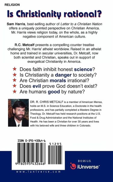 Is Christianity rational? Sam Harris, best-selling author of Letter to a Christian Nation offers a uniquely pointed perspective on Christian America. Mr. Harris views religion today, on the whole, as a highly negative component of American culture. R.C. Metcalf presents a compelling counter treatise challenging Mr. Harris' atheist worldview. Raised in an atheist home and trained in secular universities, Dr. Metcalf, now both scientist and Christian, speaks out in support of evangelical Christianity in America. Does faith inhibit honest science? Is Christianity a danger to society? Are Christian morals irrational? Does evil prove God doesn't exist? Are humans good by nature?