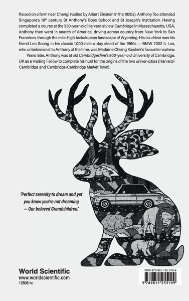 Raised on a farm near Changi (visited by Albert Einstein in the 1920s), Anthony Teo attended Singapore's 19th century St Anthony's Boys School and St Joseph's Institution. Having completed a course at the 330-year-old Harvard at new Cambridge in Massachusetts, USA, Anthony then went in search of America, driving across country from New York to San Francisco, through the mile-high Jackalopean landscape of Wyoming. His co-driver was his friend Leo Soong in his classic 1,000-mile-a-day steed of the 1960s -- BMW 2002 ti. Leo, who unbeknownst to Anthony at the time, was Madame Chiang Kaishek's favourite nephew.Years later, Anthony was at old Cambridgeshire's 800-year-old University of Cambridge, UK as a Visiting Fellow to complete his hunt for the origins of the two univer-cities (Harvard-Cambridge and Cambridge-Cambridge Market Town).