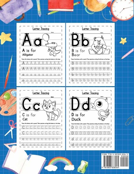 Letter Tracing Workbook! Tracing Alphabet for Preschoolers! Help your child to write with our fun workbook! Take your kid on an awesome journey through the entire ABC! In this way children are guided and optimally prepared for pre-school and primary school. Encourage your child to read the word aloud to directly practice the corresponding sound. Finally, your child learns to write the letter freely and independently. Why This Amazing Book Is Special: Large 8.5 x 11 inches size Lots of space for free practice Lovely designs Great preparation for pre-school and kindergarten Improve brain-learning and basic skills