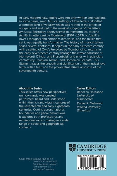 This Element traces the breadth and significance of the musical love letter with a focus on the provocative lettere amorose of the seventeenth century.