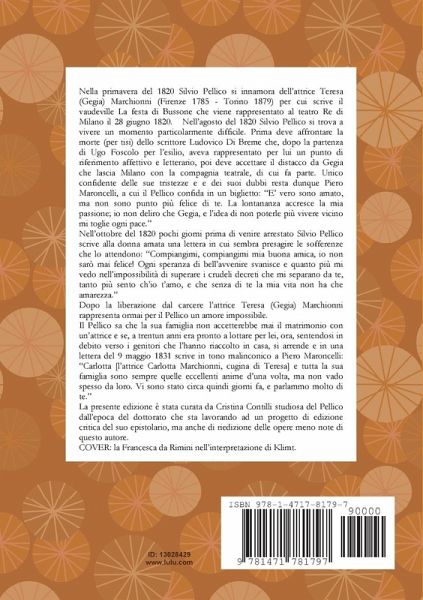 Nella primavera del 1820 Silvio Pellico si innamora dell'attrice Teresa (Gegia) Marchionni (Firenze 1785 - Torino 1879) per cui scrive il vaudeville La festa di Bussone che viene rappresentato al teatro Re di Milano il 28 giugno 1820. Nell'agosto del 1820 Silvio Pellico si trova a vivere un momento particolarmente difficile. Prima deve affrontare la morte (per tisi) dello scrittore Ludovico Di Breme che, dopo la partenza di Ugo Foscolo per l'esilio, aveva rappresentato per lui un punto di riferimento affettivo e letterario, poi deve accettare il distacco da Gegia che lascia Milano con la compagnia teatrale, di cui fa parte. Unico confidente delle sue tristezze e e dei suoi dubbi resta dunque Piero Maroncelli, a cui il Pellico confida in un biglietto: "E' vero sono amato, ma non sono punto più felice di te. La lontananza accresce la mia passione; io non deliro che Gegia, e l'idea di non poterle più vivere vicino mi toglie ogni pace."