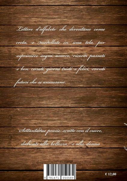Lettere d'alfabeto che diventano come creta, e modellate in una tela per esprimere sogni, amore, ricordi passati e ben curati, giorni tristi e felici, eventi futuri che si annusano. Lettere di creta è un libro nato per la poesia, anche se alcuni sonetti sono già stati pubblicati, il che potrebbe sembrare una raccolta, ma non lo è.