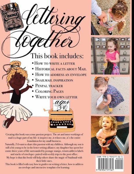 Creating this book was a true passion project. The art and inner workings of mail is a huge part of my life. It inspires me. It relaxes me. It's the entire foundation for my small business. Naturally, I'd want to share this passion with my children. Although my son is still a bit young to be in the letter writing alliance, my daughter has spent her entire three years of life surrounded by postage stamps, return address labels, and stacks of envelopes paired with weekly trips to the post office. My hope is that this book will help others share the magic of Snailmail with their little ones. This book is filled with easy how-to guides on writing a letter, how to address an envelope, and interactive templates for learning. This book includes:How to write a letter Historical facts about mail How to address an envelop Snailmail inspiration Penpal tracker Coloring Pages Write your own letter Suitable for ages 3 to 10.