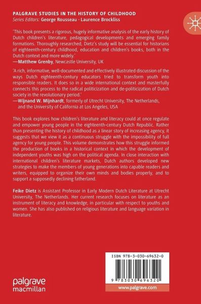 This book explores how children's literature and literacy could at once regulate and empower young people in the eighteenth-century Dutch Republic. Rather than presenting the history of childhood as a linear story of increasing agency, it suggests that we view it as a continuous struggle with the impossibility of full agency for young people. This volume demonstrates how this struggle informed the production of books in a historical context in which the development of independent youths was high on the political agenda. In close interaction with international children's literature markets, Dutch authors developed new strategies to make the members of young generations into capable readers and writers, equipped to organize their own minds and bodies properly, and to support a supposedly declining fatherland.