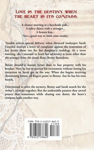 A chance meeting at a beachside pub... A sultry dance with a stranger... A brazen kiss... Not a good way to meet your enemy. Trouble arrives special delivery when divorced innkeeper Sarah Grayson receives a letter of complaint against the renovation of her Jersey shore inn for her daughter's wedding. At a town meeting, she's stunned to learn her adversary is none other than the stranger from the dance floor, Benny Benedetto. Benny should've known better than to buy property with his brother. Now he has to protect his investment without letting his attraction to Sarah get in the way. When she begins receiving threatening letters, all fingers point to Benny--but he has his own hunch. Determined to solve the mystery, Benny and Sarah search for the writer's identity together. But the undeniable passion they unveil proves that sometimes while chasing one desire, the heart's compass leads another way.
