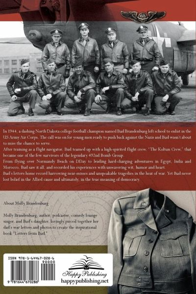 "Letters From Bud" is the remarkable, first-hand account of the harrowing air war in Europe as told by WW2 flight navigator and bombardier John "Bud" Brandenburg, in his letters home during the conflict, from 1944-45. With guts, wit and grace, Brandenburg records his experiences with the daring "Koltun crew," which flew 30 missions over Europe. Through numerous strokes of fate, the crew survived a run of missions with the "bloody" 492nd Bomb Group, a unit that endured an 80 percent casualty rate as the men faced down the seemingly unstoppable German Luftwaffe. Brandenburg's letters create a stirring picture of one young man's experiences during the war, as he served with the US Army Air Corps in Europe and then navigated supply runs with the Air Transport Command in the exotic North African and Middle Eastern theaters. Re-edited for publication by his daughter Molly, Bud's witty and often heartbreaking observations of life during the final, epoch-changing days of the war make for an unforgettable and highly adventurous read.