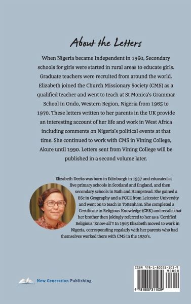 When Nigeria became Independent in 1960, Secondary schools for girls were started in rural areas to educate girls. Graduate teachers were recruited from around the world. Elizabeth joined the Church Missionary Society (CMS) as a qualified teacher and went to teach at St Monica's Grammar School in Ondo, Western Region, Nigeria from 1965 to 1970. These letters written to her parents in the UK provide an interesting account of her life and work in West Africa including comments on Nigeria's political events at that time. She continued to work with CMS in Vining College, Akure until 1990. Letters sent from Vining College will be published in a second volume later.