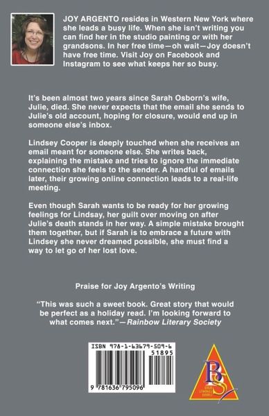 It's been almost two years since Sarah Osborn's wife, Julie, died. She never expects that the email she sends to Julie's old account, hoping for closure, would end up in someone else's inbox. Lindsey Cooper is deeply touched when she receives an email meant for someone else. She writes back, explaining the mistake and tries to ignore the immediate connection she feels to the sender. A handful of emails later, their growing online connection leads to a real-life meeting. Even though Sarah wants to be ready for her growing feelings for Lindsay, her guilt over moving on after Julie's death stands in her way. A simple mistake brought them together, but if Sarah is to embrace a future with Lindsey she never dreamed possible, she must find a way to let go of her lost love.