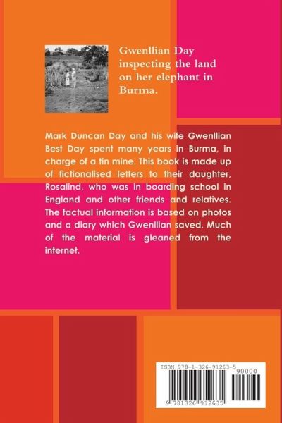 Mark Day was a mining engineer. He spent many years in charge of a tin mine in lower Burma. This is a fictionalised account of some his wife, Gwenllian's life in 1935, based on a diary and photos.