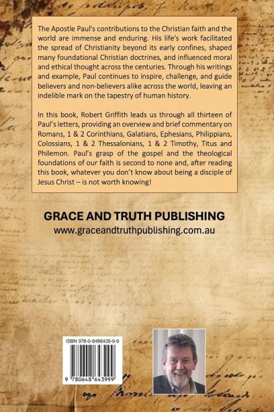 The Apostle Paul's contributions to the Christian faith and the world are immense and enduring. His life's work facilitated the spread of Christianity beyond its early confines, shaped many foundational Christian doctrines, and influenced moral and ethical thought across the centuries. Through his writings and example, Paul continues to inspire, challenge, and guide believers and non-believers alike across the world, leaving an indelible mark on the tapestry of human history. In this book, Robert Griffith leads us through all thirteen of Paul's letters, providing an overview and brief commentary on Romans, 1 & 2 Corinthians, Galatians, Ephesians, Philippians, Colossians, 1 & 2 Thessalonians, 1 & 2 Timothy, Titus and Philemon. Paul's grasp of the gospel and the theological foundations of our faith is second to none and, after reading this book, whatever you don't know about being a disciple of Jesus Christ - is not worth knowing!