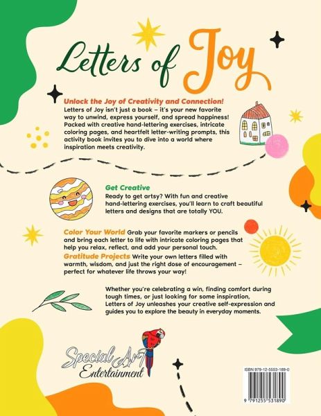 Letters of Joy: A Creative Journey of Hand-Lettering, Coloring, and Self-Expression Immerse yourself in creativity and self-discovery with Letters of Joy, a captivating blend of hand-lettering exercises, coloring pages, and empowering self-help themes. This book is more than a guide to artistic expression-it's a journey into mindfulness and personal growth, making it the perfect gift for anyone seeking inspiration, relaxation, and creativity. Whether you're passionate about coloring, hand-lettering, or simply love books that encourage self-reflection, Letters of Joy offers a unique and enriching experience. Through beautifully designed pages, you'll practice various hand-lettering techniques while exploring meaningful themes like gratitude, joy, and personal empowerment. Why you'll love Letters of Joy: Creative freedom: Every page invites you to experiment with hand-lettering styles and color intricate designs, allowing your imagination to run wild. Empowering exercises: Engage in thoughtful activities that inspire self-expression and introspection, helping you connect with your emotions and unlock your inner joy. Mindfulness in action: The combination of coloring and hand-lettering fosters a sense of calm and focus, making this a therapeutic experience that nurtures both creativity and well-being. The perfect gift: Ideal for women and girls who love art, lettering, and self-help themes, Letters of Joy is a thoughtful and unique gift for birthdays, holidays, or simply to brighten someone's day. Whether you're looking for a peaceful creative outlet, a mindful practice, or a beautifully crafted gift, Letters of Joy delivers it all. Celebrate your creative spirit and embark on a journey of self-exploration, all while crafting beautiful designs and inspiring words. Give the gift of creativity and joy-Letters of Joy is the perfect present for artists, calligraphy enthusiasts, and anyone who loves coloring and self-care.