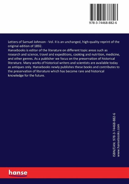 Letters of Samuel Johnson - Vol. II is an unchanged, high-quality reprint of the original edition of 1892.