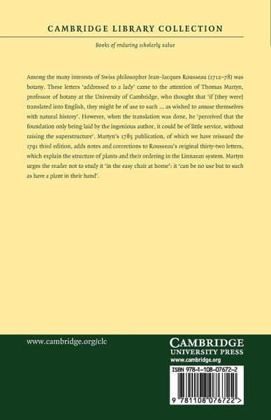 Among the many interests of Swiss philosopher Jean-Jacques Rousseau was botany. These letters 'addressed to a lady' on the Linnaean system and the structure of plants came to the attention of Thomas Martyn, professor of botany at the University of Cambridge, who published a translation and continuation in 1785.