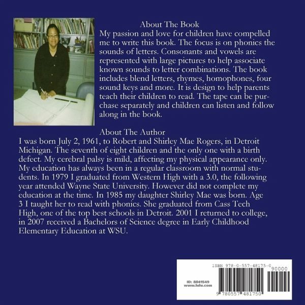 The book is to help parents teach their children. It is designed to identify the letters and sounds of words. It's in full color with pictures that children can recognize easily. The letters are large in capital and lower case. To help children associate pictures to letters.