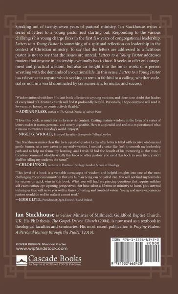 Speaking out of twenty-seven years of pastoral ministry, Ian Stackhouse writes a series of letters to a young pastor just starting out. Responding to the various challenges his young charge faces in the first few years of congregational leadership, Letters to a Young Pastor is something of a spiritual reflection on leadership in the context of Christian ministry. To say that the letters are addressed to a fictitious pastor is not to say that the issues are unreal. Letters to a Young Pastor addresses matters that anyone in leadership eventually has to face. It seeks to offer encouragement and practical wisdom, but also an insight into the inner world of a person wrestling with the demands of a vocational life. In this sense, Letters to a Young Pastor has relevance to anyone who is seeking to remain faithful to a calling, whether ecclesial or not, in a world dominated by consumerism, formulas, and success.