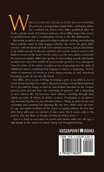 While a student, Franz Kappus began sending his poetry to a young Rainer Maria Rilke, seeking his advice. The resultant ten letters from Rilke, published after his death, contain words of luminous intimacy where Rilke shapes the ecstasy of youthful desire into a consideration of how to live life deliberately. Becoming an artist is an apprenticeship in solitude, seeking, and suffering. When initially asked by Herr Kappus whether his verses are good, Rilke counters with the dismissal of all such outward concerns, and an admonition to go inside oneself, to discover whether one's poetic motives reach to the hidden recesses of the heart. For the artist is on his own, alone, centered in his innermost depths. Rilke next speaks of surrounding oneself with books, in which one may enter worlds of inconceivable greatness. In a subsequent letter he writes of the artist's vocation as one of growing into the spirit of childhood, where everything that happens is forever a beginning. And he writes of moments of sorrow as a new thing entering us; and, unnoticed, becoming a part of our very life-blood. For Rilke, art is a way of living: becoming a poet or an artist is not so much about learning one's craft as about becoming a certain kind of person. Act is preceded by being, so that an unrestrained devotion to the creative process must proceed from the nurturing of patience and a deepening of one's interior life. An immense inner stillness, reaching through time, rightly precedes all efforts of artistic creation. Developing as an artist is not measured by time or any external markers: "Being an artist means, not reckoning and counting, but ripening like the tree, which does not force its sap, and stands confident in the storms of spring without the fear that after them will come no summer. It does come. But it comes only to the patient, who are there as though eternity lay before them...." This is a book to encounter in youth and remain with into old age, a vade mecum in the school of artistic being and thoughtful living.