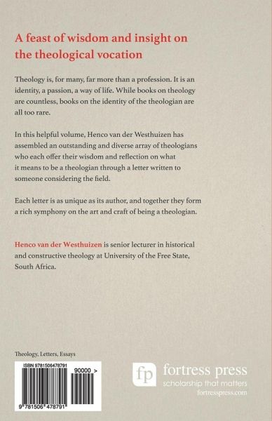 In this volume, Van der Westhuizen has assembled an outstanding and diverse array of theologians who offer their wisdom and reflection on what it means to be a theologian. Each contributor's brief letter considering the vocation is as unique as its author. Together the letters form a rich symphony on the art and craft of being a theologian.