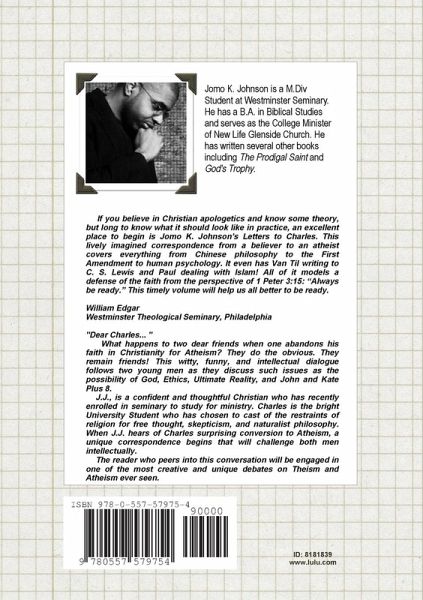 What do dear friends who grew up together do when one abandons his faith in God for Atheism? They do the obvious. They remain friends! This witty, funny, and intellectual dialogue follows two young men as they discuss such issues as the possibility of God, Science, Ultimate Reality, and John and Kate Plus 8. Charles is the bright University Student who has chosen to cast off the restraints of religion for free thought, skepticism, and naturalist philosophy. JJ, his dear and beloved friend, has just enrolled in seminary to study for ministry. When JJ hears of Charles surprising conversion to Atheism, a unique correspondence begins that will challenge both men intellectually. The reader who peers into this conversation will be engaged in one of the most creative and unique debates on Theism and Atheism ever seen.