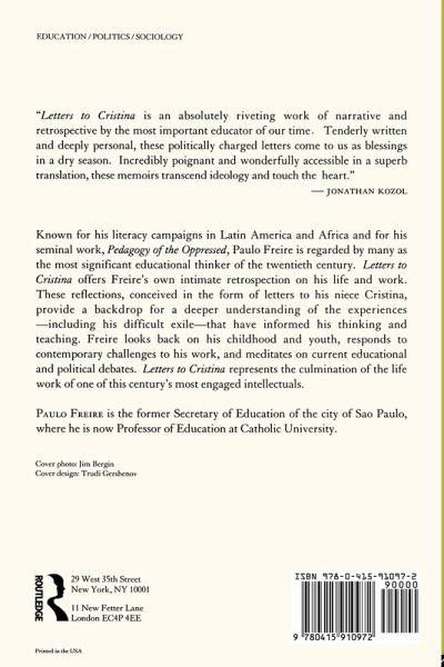 Paulo Freire is regarded by many as the most significant educational thinker of the twentieth century. This volume offers Freire's own intimate retrospection of his life and work. These reflections, dedicated to his niece Cristina, provide a backdrop for a deeper understanding of how his experiences are linked to his philosophical and pedagogical work.