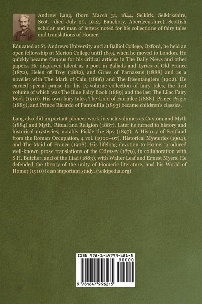 Andrew Lang, (born March 31, 1844, Selkirk, Selkirkshire, Scot.-died July 20, 1912, Banchory, Aberdeenshire), Scottish scholar and man of letters noted for his collections of fairy tales and translations of Homer. Educated at St. Andrews University and at Balliol College, Oxford, he held an open fellowship at Merton College until 1875, when he moved to London. He quickly became famous for his critical articles in The Daily News and other papers. He displayed talent as a poet in Ballads and Lyrics of Old France (1872), Helen of Troy (1882), and Grass of Parnassus (1888) and as a novelist with The Mark of Cain (1886) and The Disentanglers (1902). He earned special praise for his 12-volume collection of fairy tales, the first volume of which was The Blue Fairy Book (1889) and the last The Lilac Fairy Book (1910). His own fairy tales, The Gold of Fairnilee (1888), Prince Prigio (1889), and Prince Ricardo of Pantouflia (1893) became children's classics. Lang also did important pioneer work in such volumes as Custom and Myth (1884) and Myth, Ritual and Religion (1887). Later he turned to history and historical mysteries, notably Pickle the Spy (1897), A History of Scotland from the Roman Occupation, 4 vol. (1900-07), Historical Mysteries (1904), and The Maid of France (1908). His lifelong devotion to Homer produced well-known prose translations of the Odyssey (1879), in collaboration with S.H. Butcher, and of the Iliad (1883), with Walter Leaf and Ernest Myers. He defended the theory of the unity of Homeric literature, and his World of Homer (1910) is an important study. (wikipedia.org)