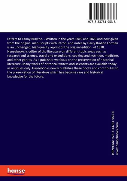 Letters to Fanny Brawne. - Written in the years 1819 and 1820 and now given from the original manuscripts with introd. and notes by Harry Buxton Forman is an unchanged, high-quality reprint of the original edition of 1878.